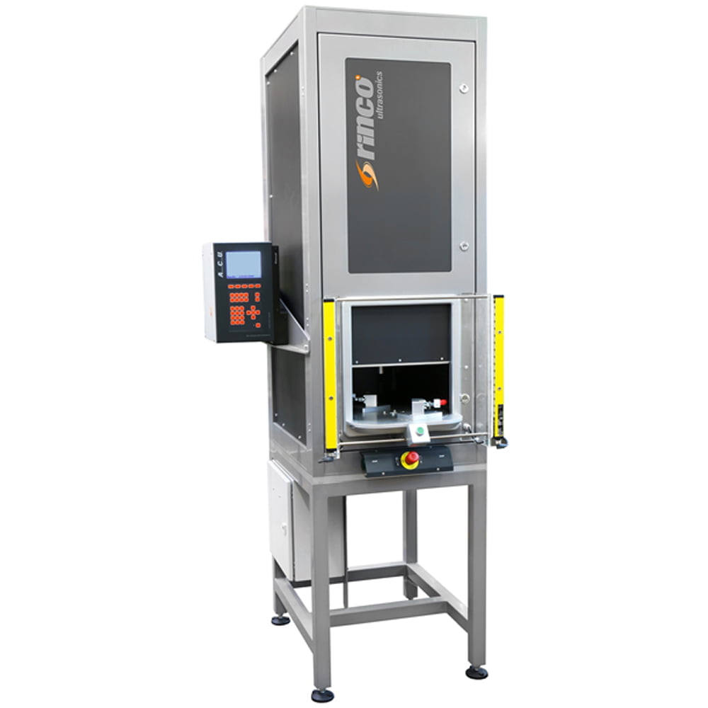 The Rinco workstation with rotary table can be used together with the following ultrasonic welders – Dynamic 3000, Dynamic 745, Standard 3000 and Standard 745. Ideal for use whenever the sound emitted from the process is too high, as it houses the ultrasonic welder inside a sound insulated Sound Enclosure.